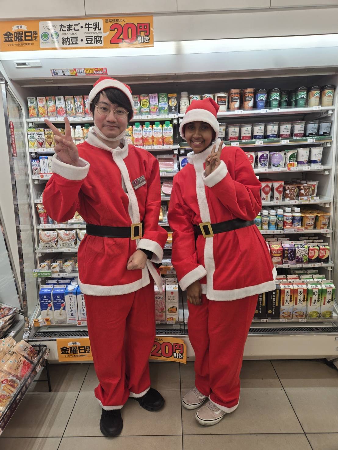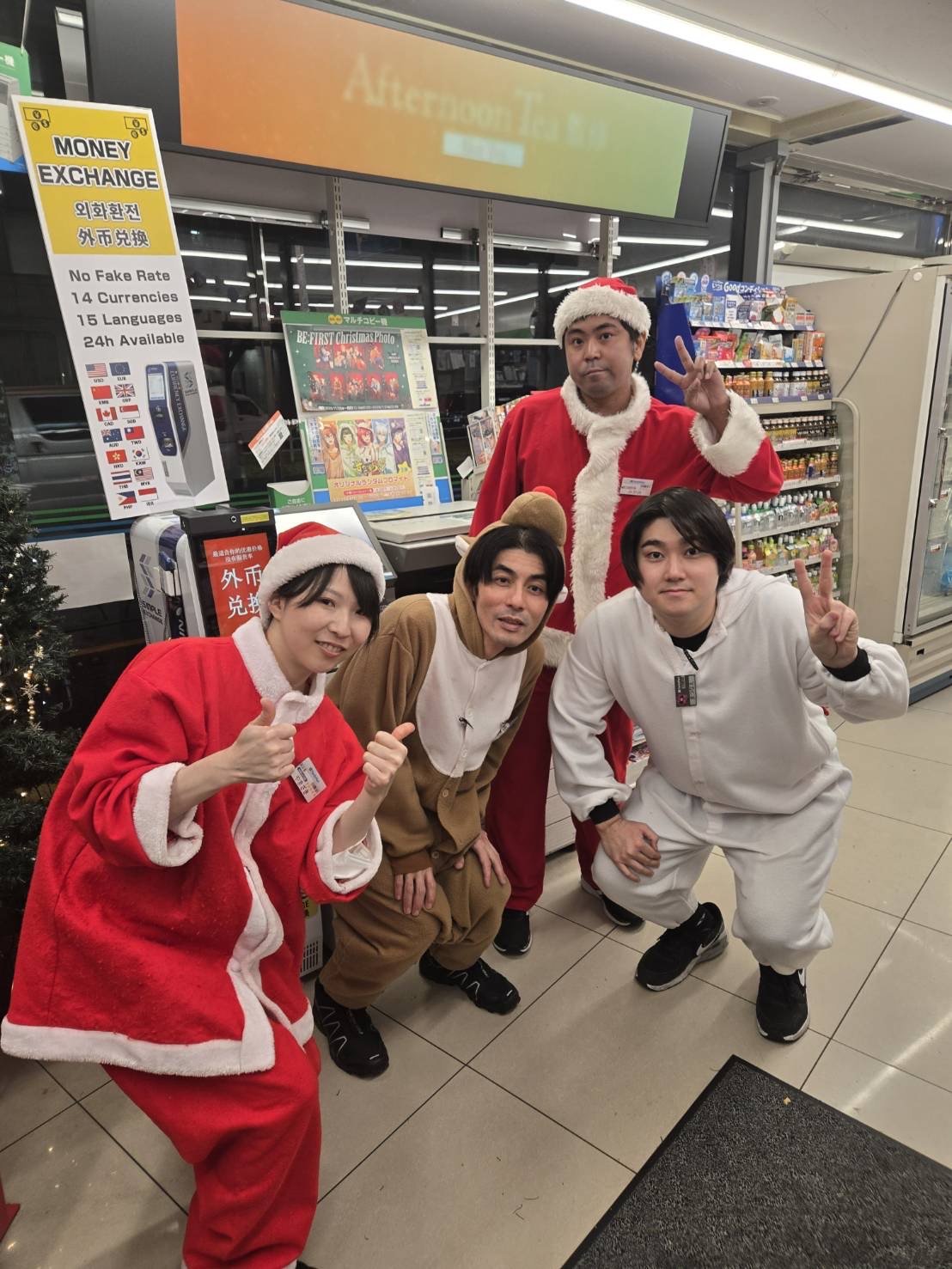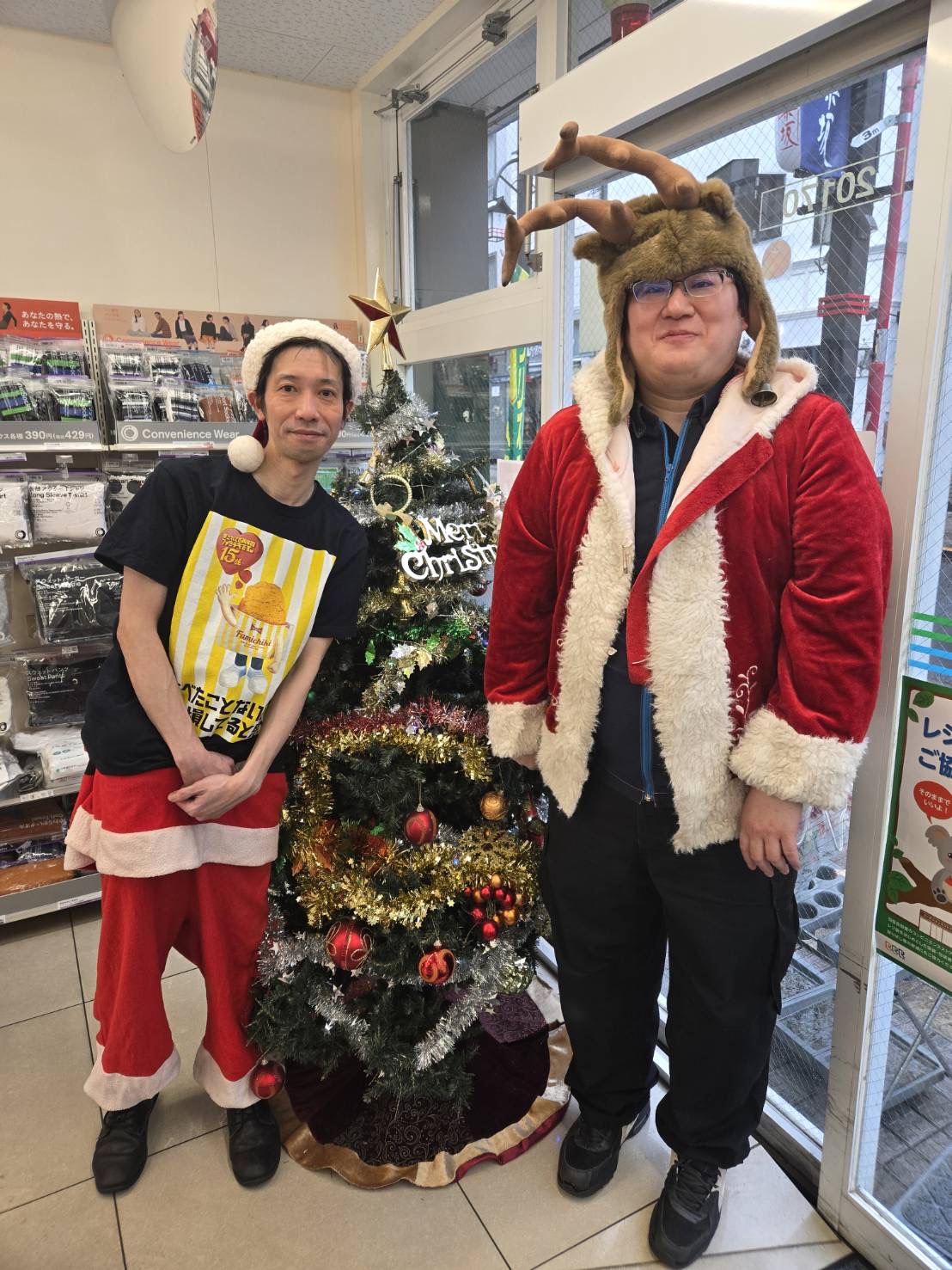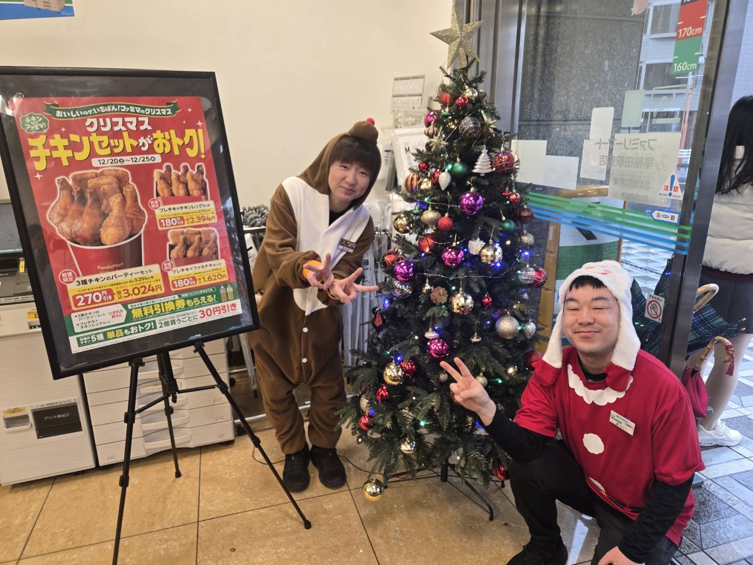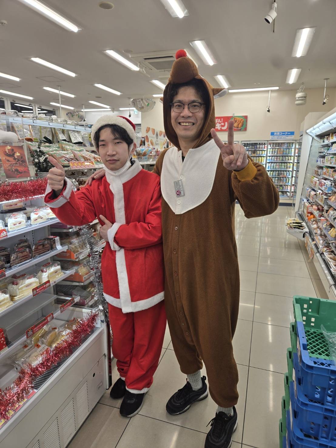 今年のクリスマスもファーストライズ恒例行事、サンタ&トナカイ扮装を実施しました! 雨の2日間となりましたが、ファミリーマートライズ社員は笑顔満点でクリスマス商戦をやりきりました! 毎年感じてますが雰囲気最高です(^^)